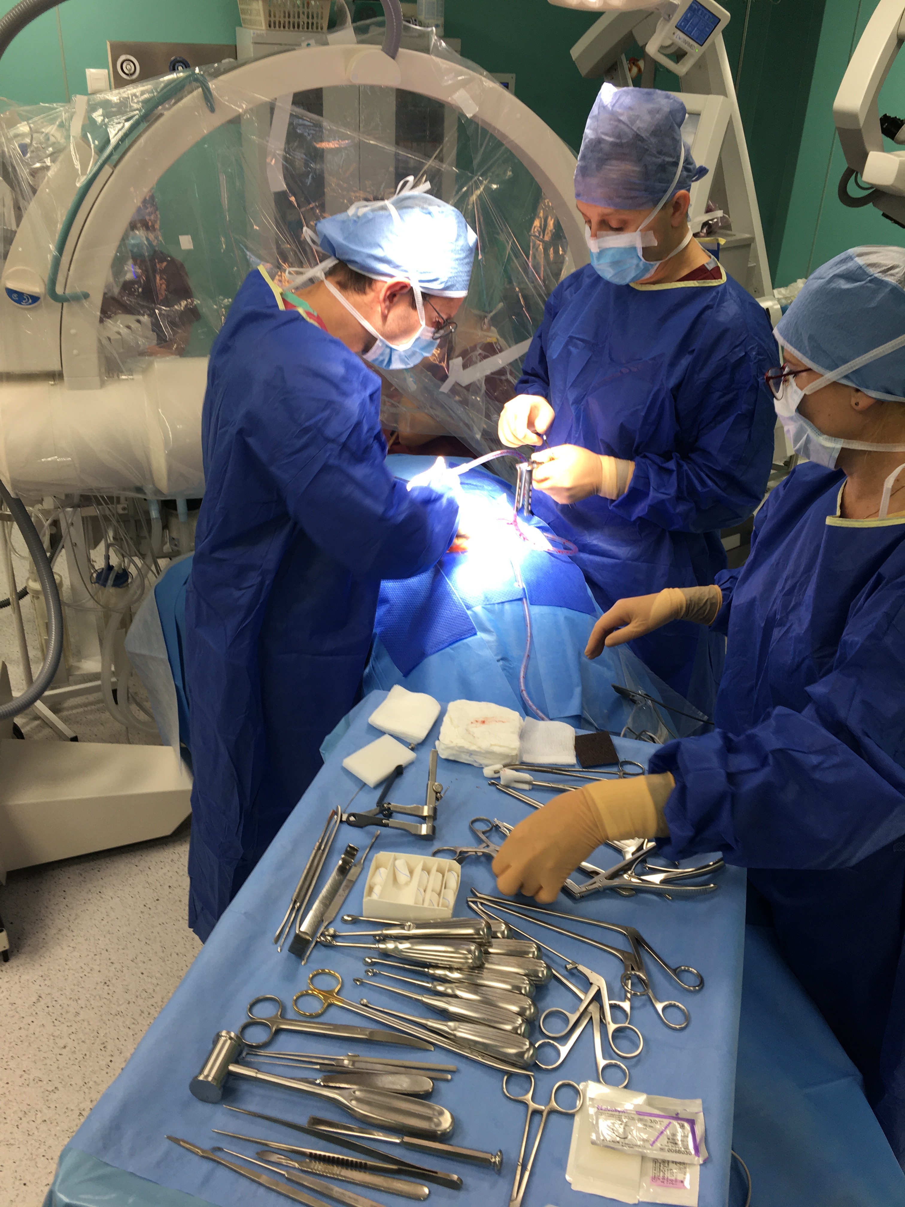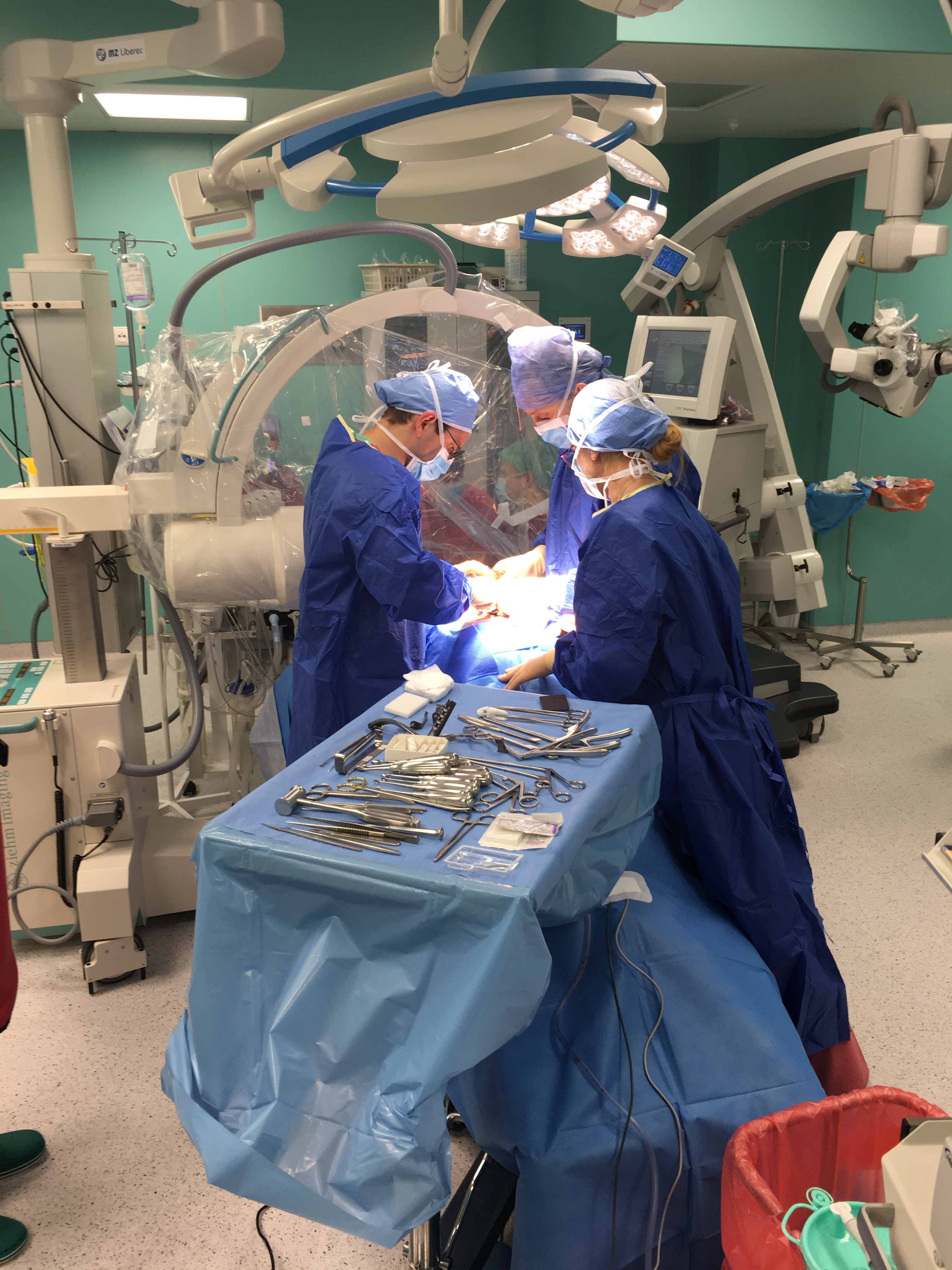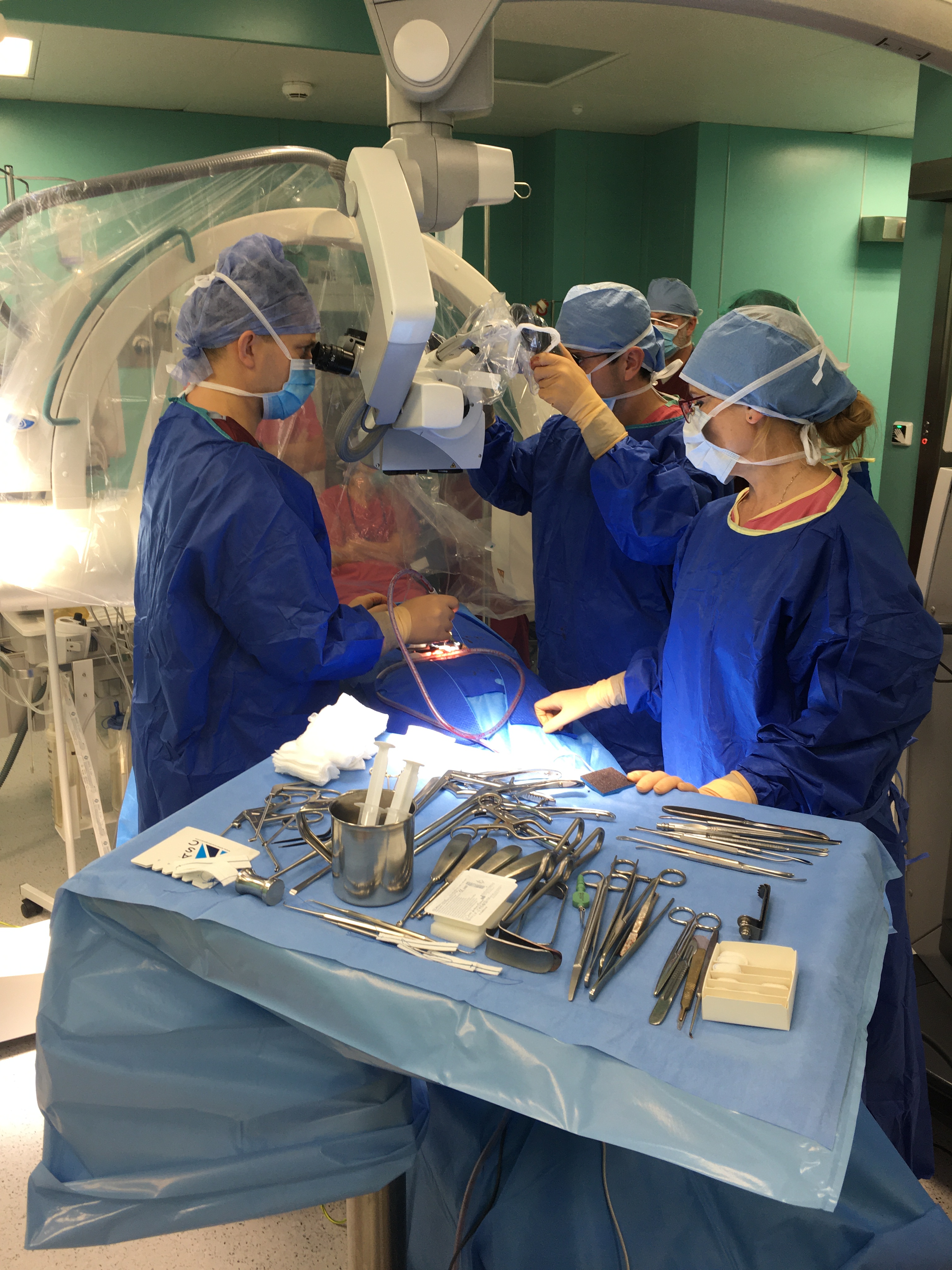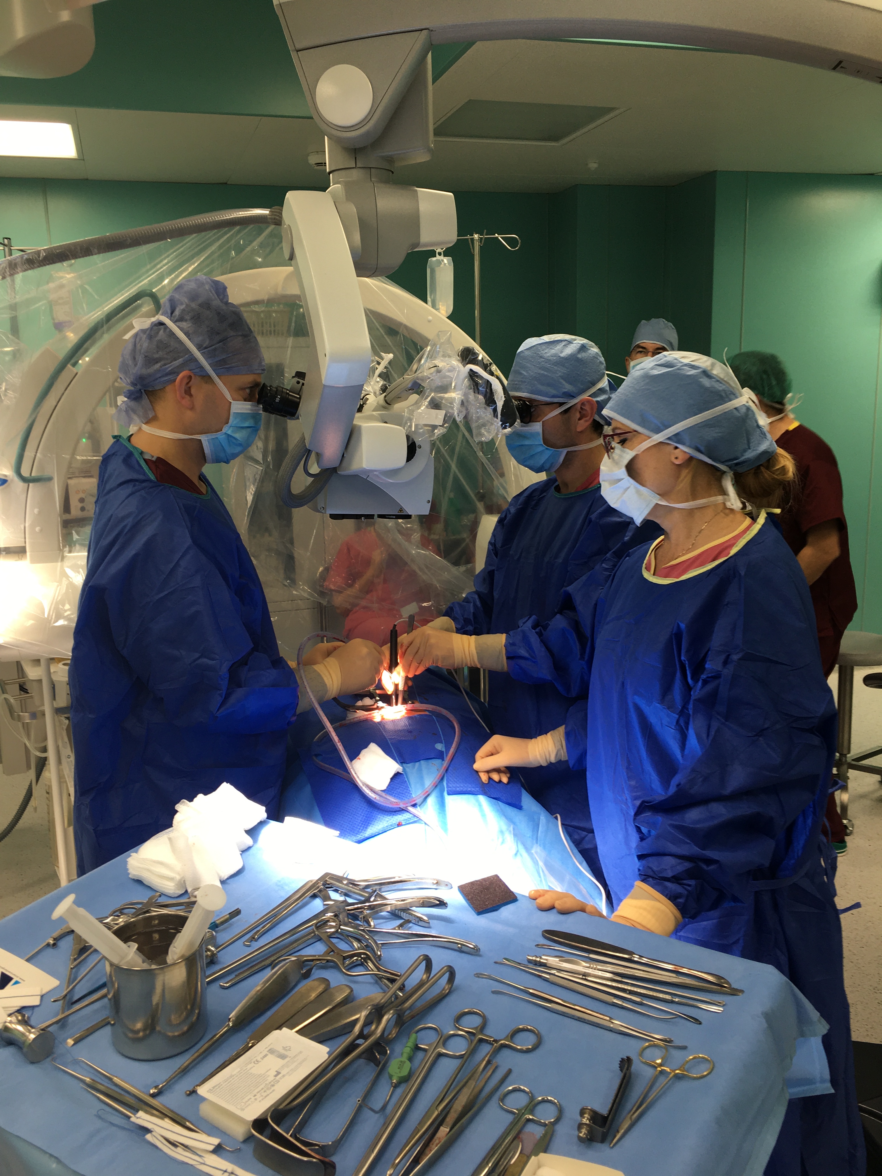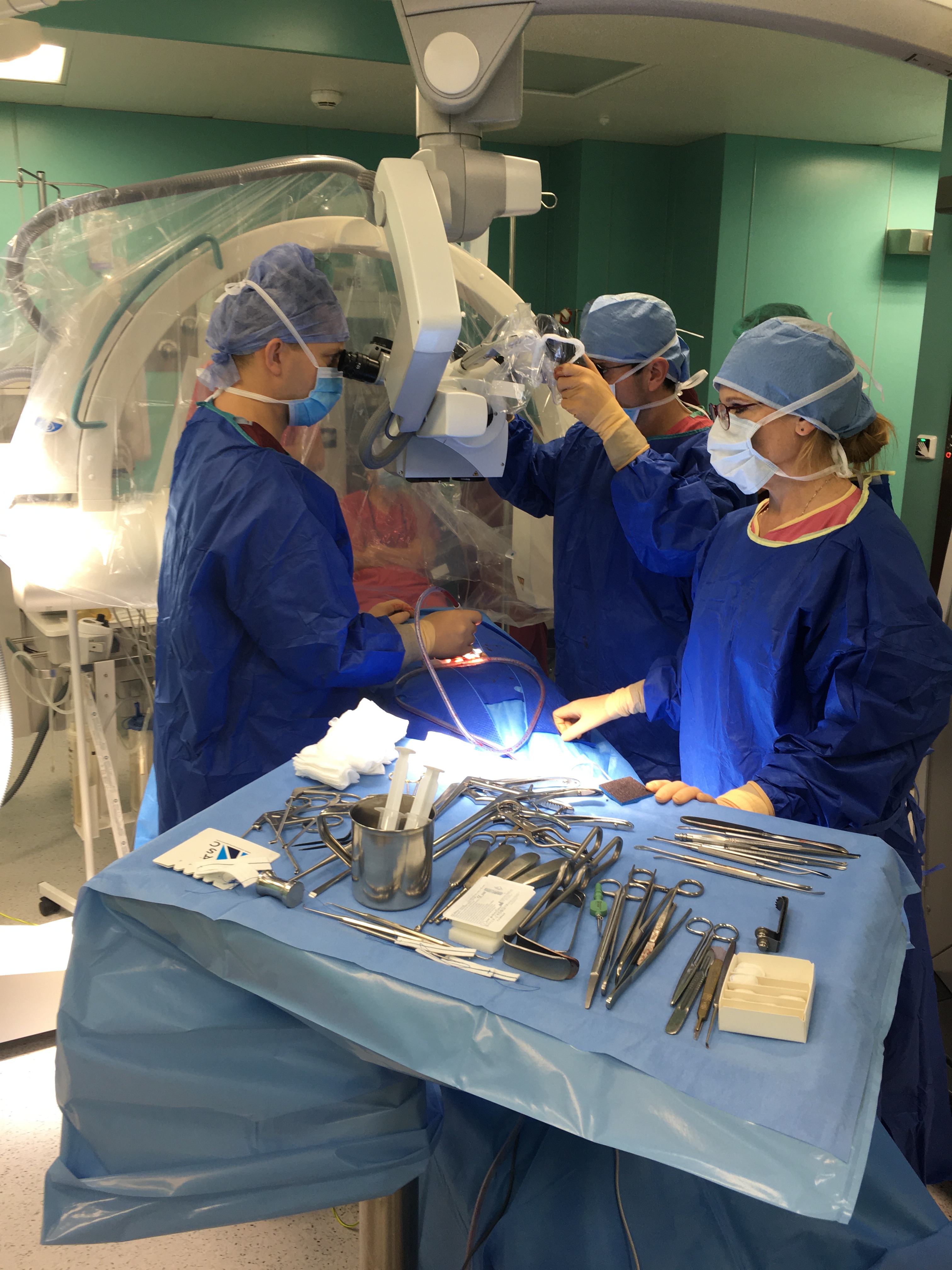 Z użyciem wysokiej klasy mikroskopu śródoperacyjnego neurochirurdzy Rober Konior, Marcin Czternastek, dokonali mikrochirurgicznego odbarczenia struktur kanału kręgowego, m.in. usuwając przepuklinę jądra miażdżystego u dwóch pacjentek z objawami dyskopatii lędźwiowej. Obie operacje udały się a pacjentki dnia 18.11.2019 r. zostały wypisane do domu bez powikłań.