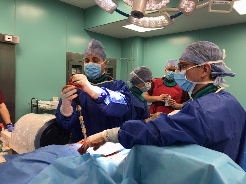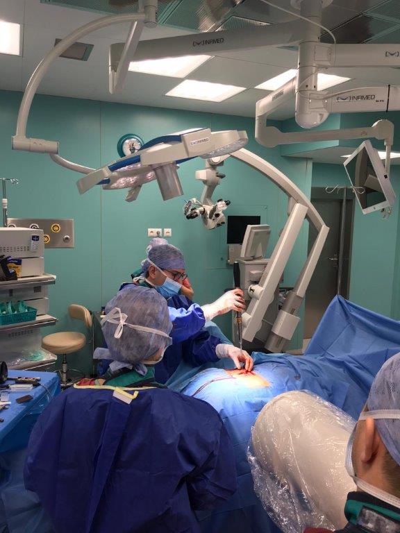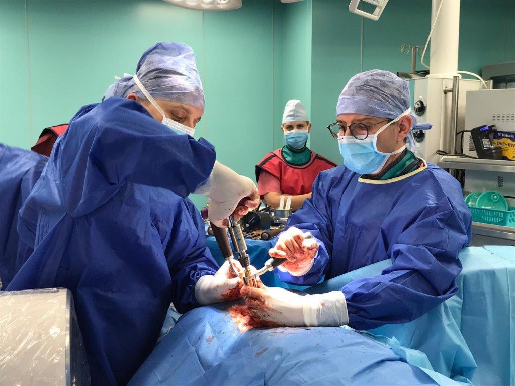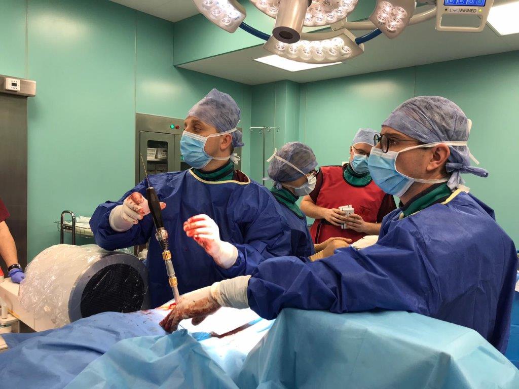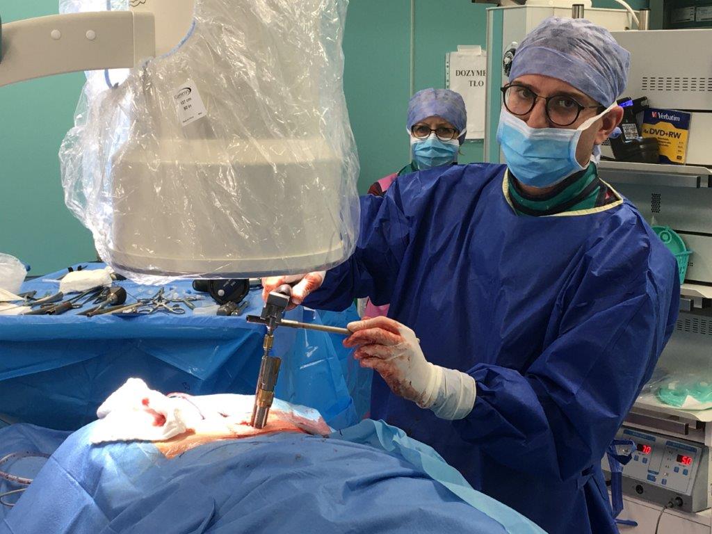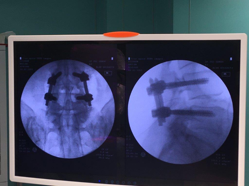 a następnie dokonali przezskórnej stabilizacji kręgosłupa nowoczesnymi tytanowymi implantami. Operacja przebiegła bez powikłań a pacjent czwartego dnia opuścił szpital będąc samodzielny. Powyższa technika umożliwia uruchamianie pacjenta już następnego dnia po operacji i szybki powrót do sprawności ( dwukrotnie szybszy niż w przypadku technik klasycznych).