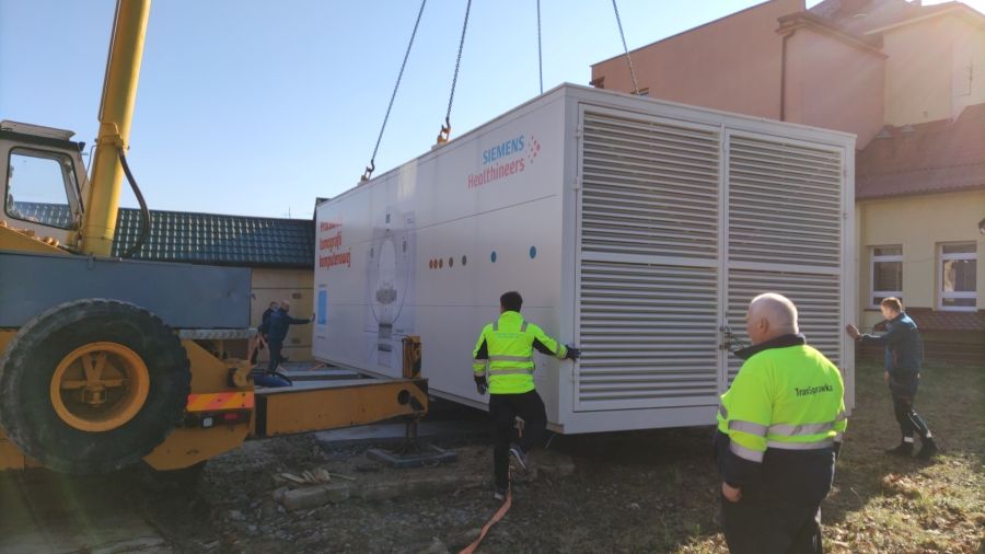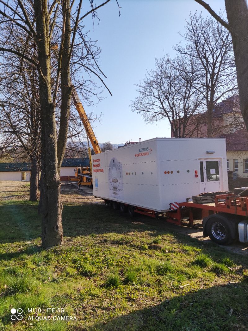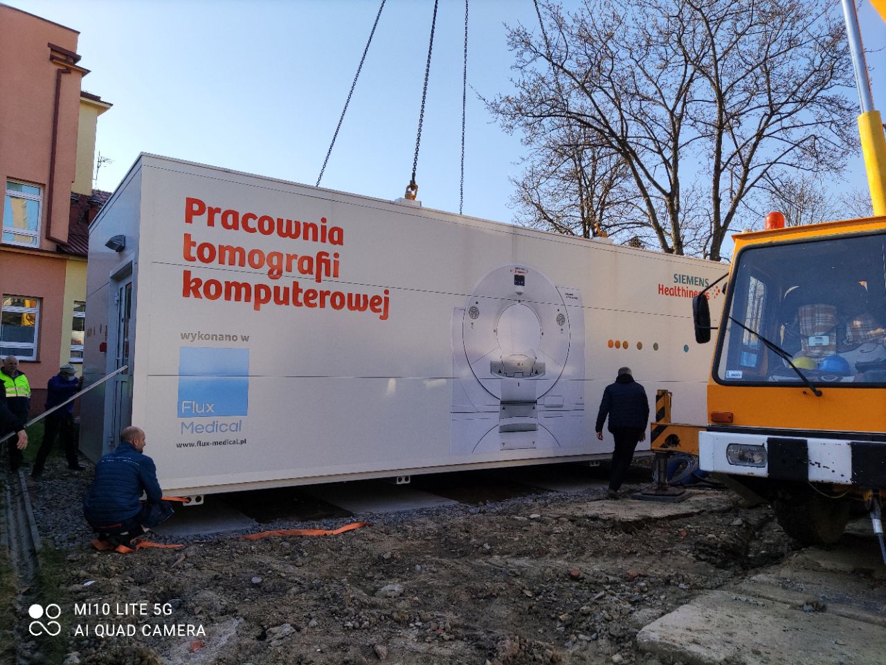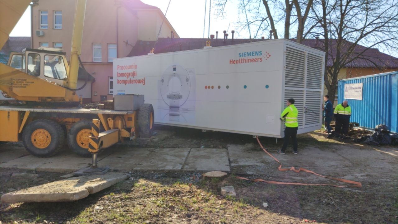 W dniu dzisiejszym (27.04.2021r.) tomograf komputerowego SOMATOM Definition Edge w kontenerze dotarł do sanockiego szpitala.