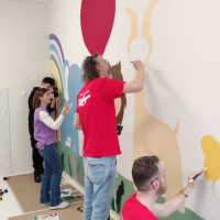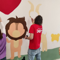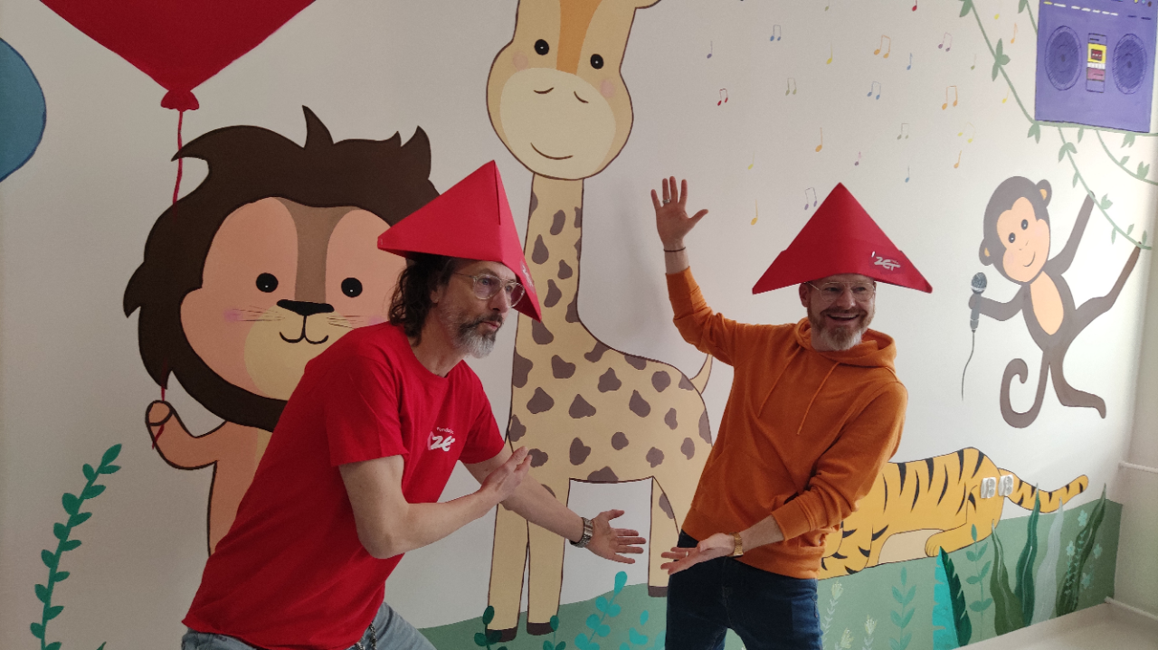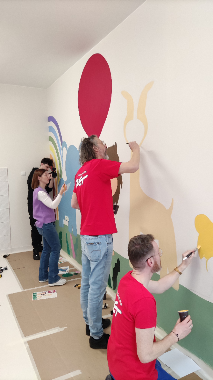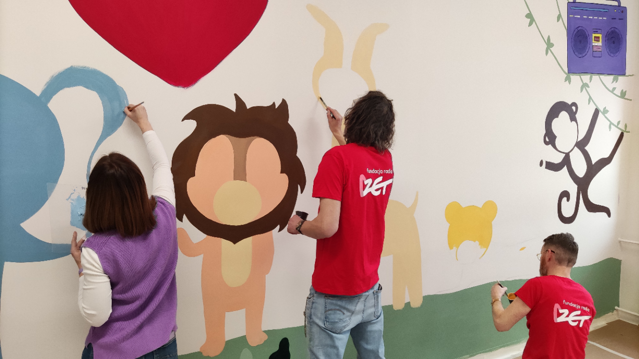 Szymon Majewski i Marek Starybrat, którzy są wolontariuszami fundacji Radia Zet, stworzyli dla nas piękne bajkowe murale, które zdobią ściany pracowni. Dzięki nim nasza pracownia stała się jeszcze bardziej przyjazna dla dzieci.