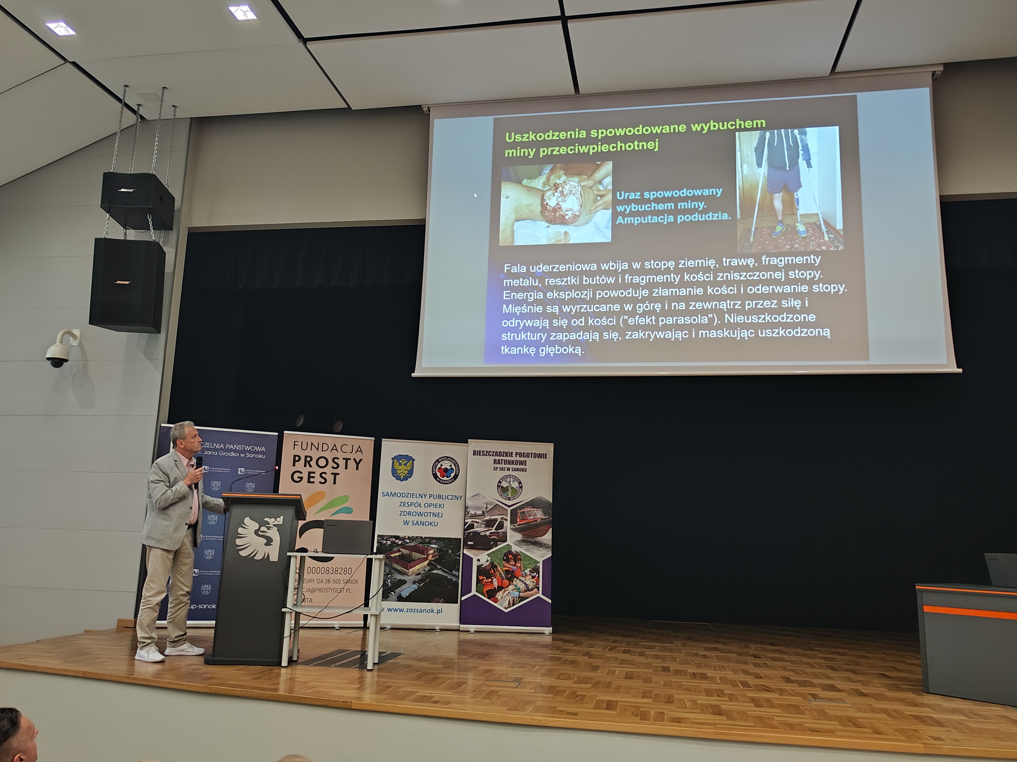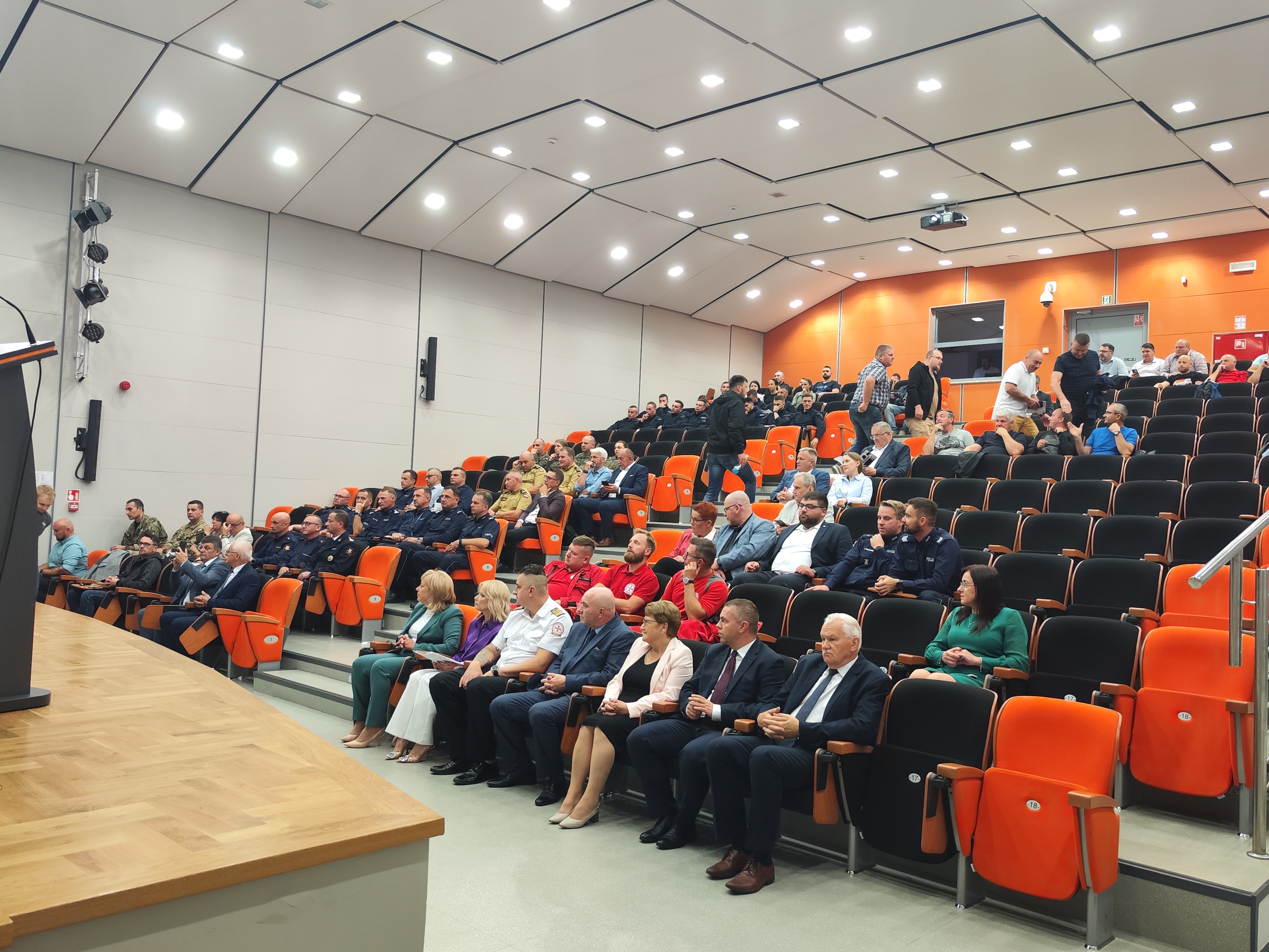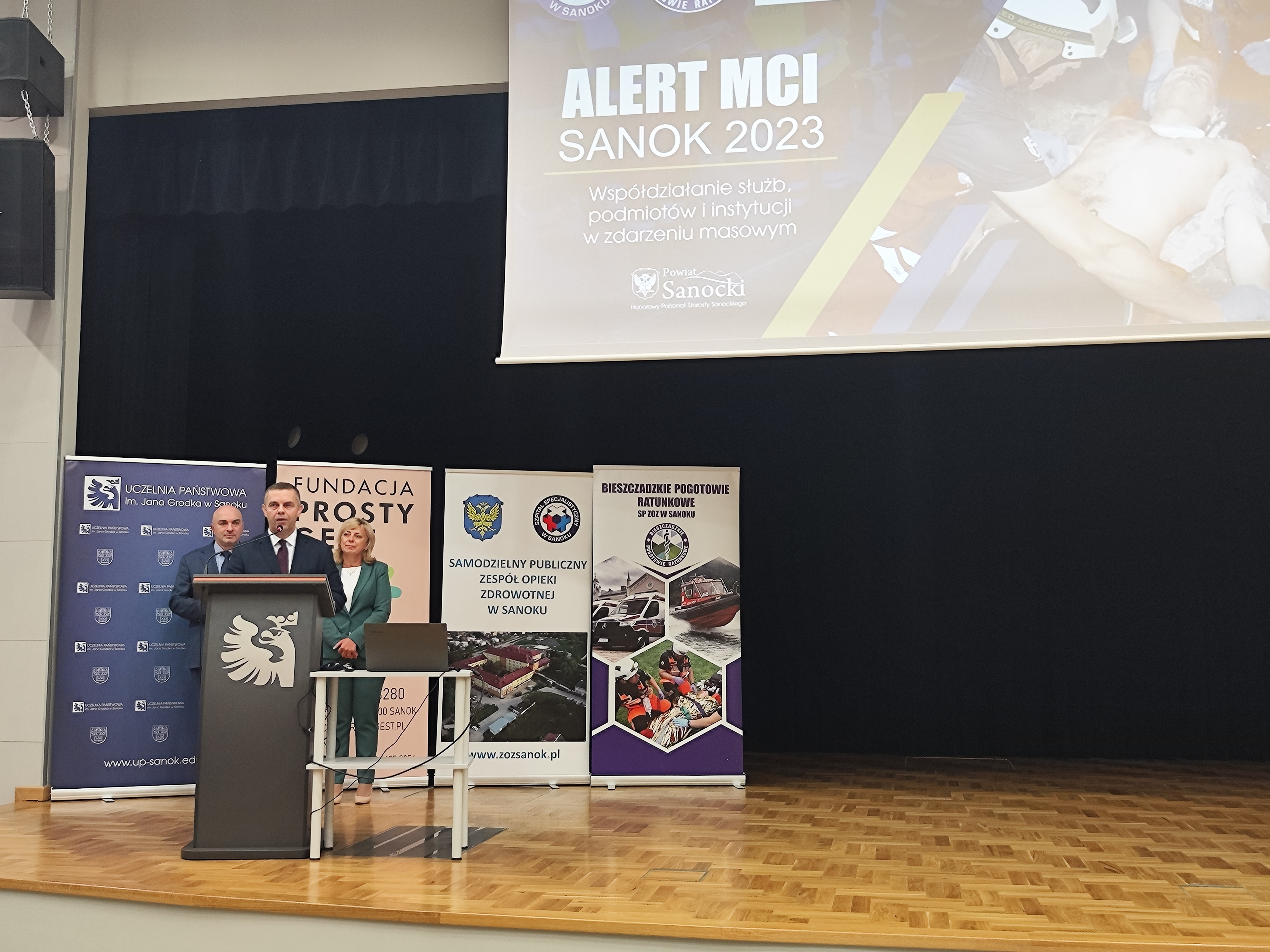 W dniu 14 września 2023 r. w Auli Centrum Sportowo-Dydaktycznego Uczelni Państwowej im. Jana Grodka w Sanoku przeprowadzono seminarium poświęcone przedstawieniu praktycznych aspektów pracy i zadań poszczególnych służb w przypadku zdarzenia masowego, obejmującego dużą liczbę poszkodowanych, w formie wykładów prowadzonych przez uczestników ćwiczeń. Ich tematyka obejmowała przedstawienie procedur związanych z odpowiednim zabezpieczaniem osób poszkodowanych i miejsc takich zdarzeń, jak również zasady współdziałania służb mundurowych z cywilnymi służbami ratunkowymi, w szczególności w zakresie ewakuacji poszkodowanych, integracji działań i zasobów kadrowych oraz ustalenia zasad współpracy jednostek, jak również propozycje odnośnie usprawnienia istniejących procedur.