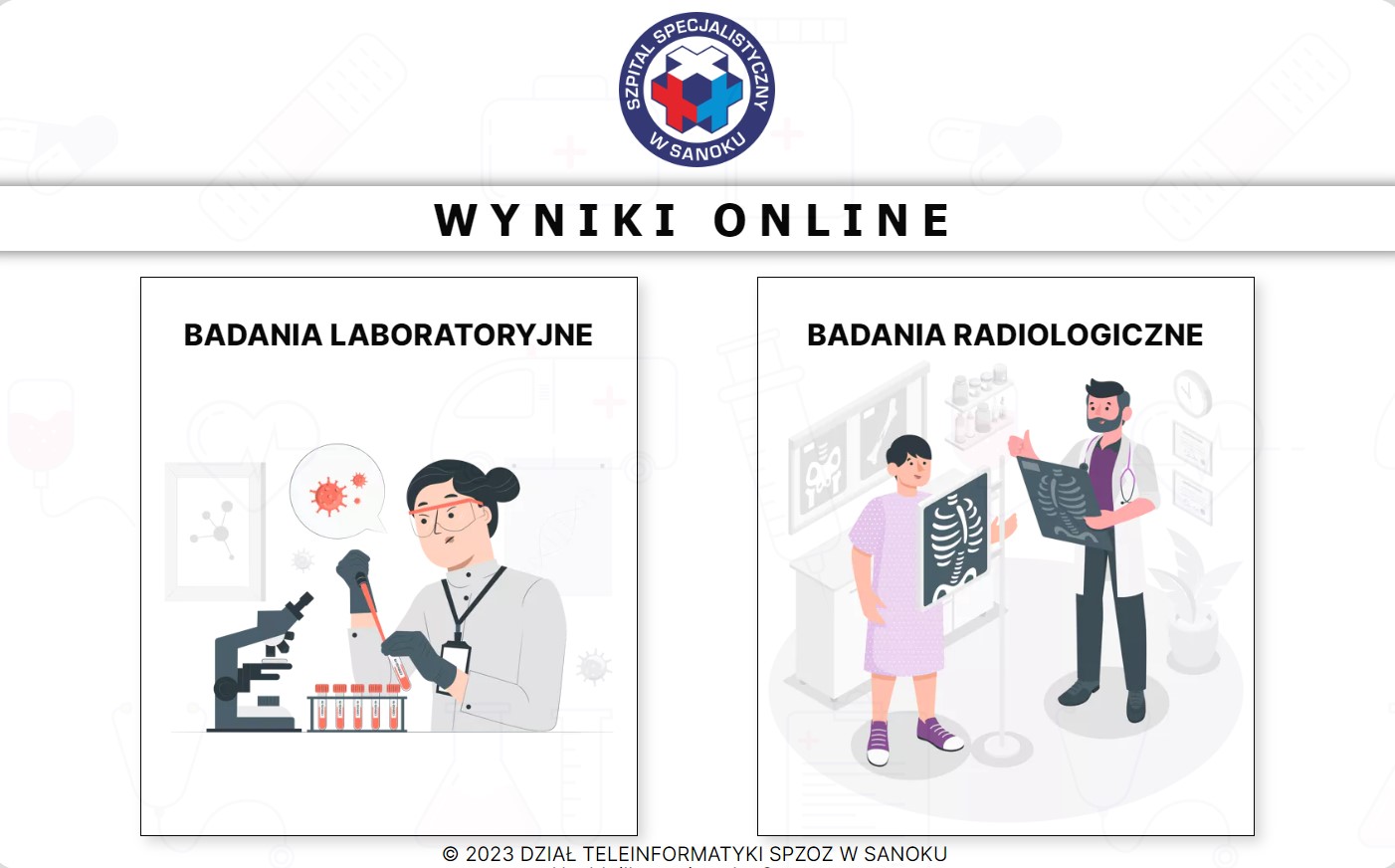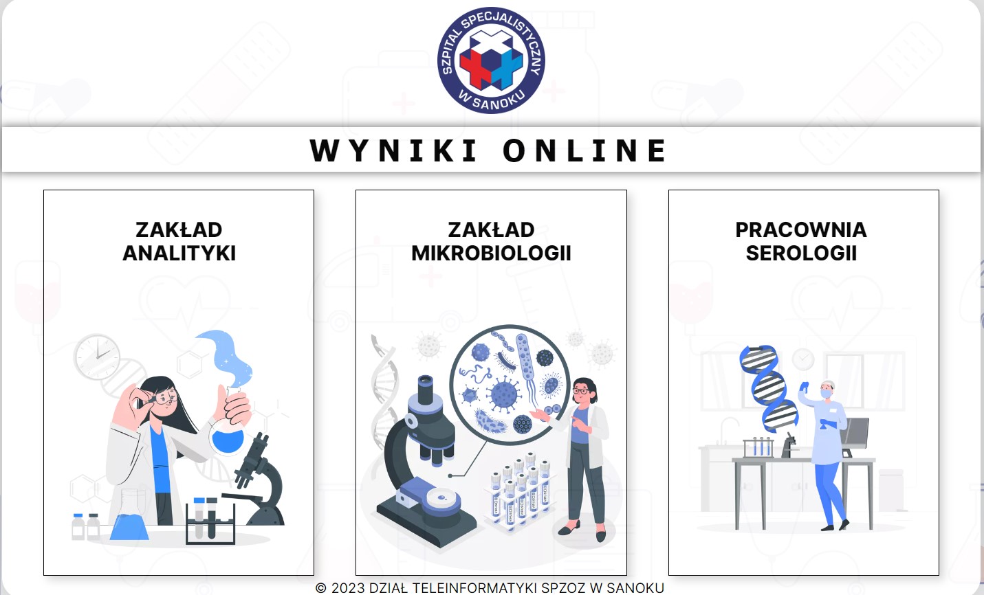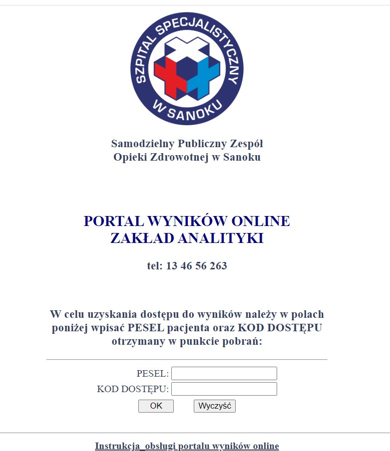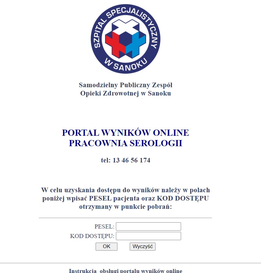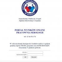 Informujemy, że od listopada 2023r klienci indywidualni wykonujący badania w Zakładzie Mikrobiologii, Zakładzie Analityki Medycznej oraz Pracowni Serologii mają możliwość ich podglądu „on-line”, na stronie internetowej: https://wyniki.zozsanok.pl