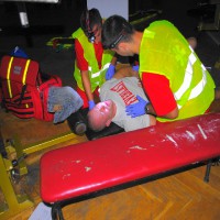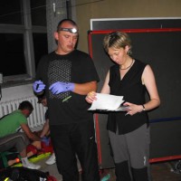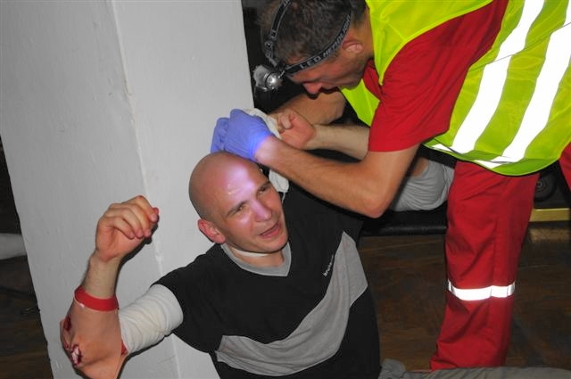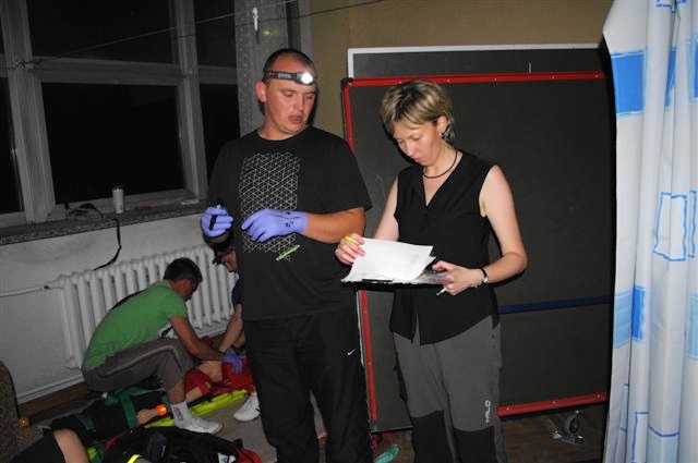 Zespół sanockich lekarzy i ratowników medycznych w składzie: lek. med. Joanna Bierawska, dr med. Jarosław Sawka, Daniel Owarzany, Daniel Załączkowski, Łukasz Fedczak, Tomasz Florczak i Grzegorz Michorczyk wraz ze studentami pierwszego roku PWSZ przeprowadzili pozorację, jednocześnie oceniając na kartach kontrolnych skuteczność działań zespołów ratowniczych. Całość zadania nocnego wymagała blisko sześciu godzin intensywnej pracy.