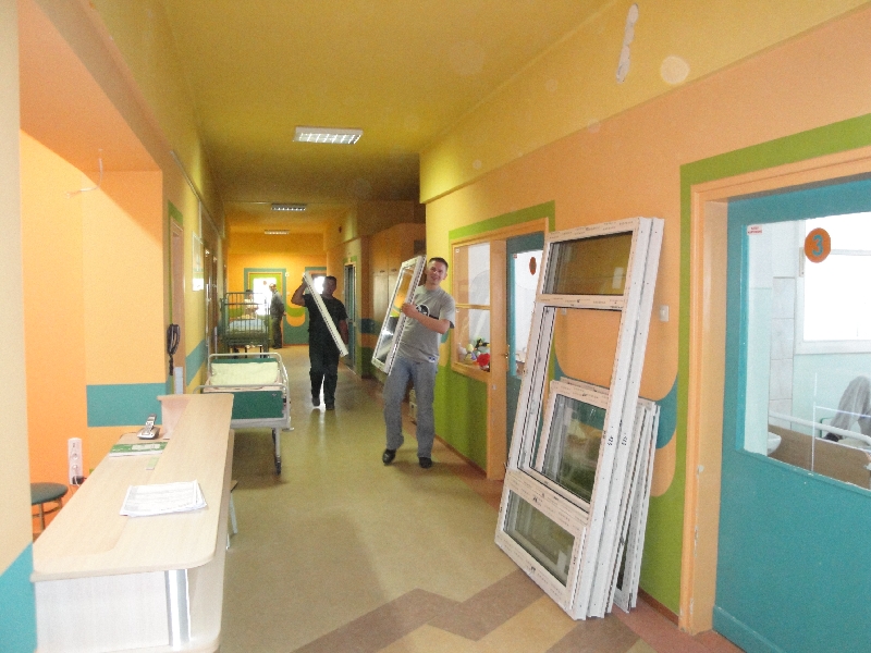 W ramach prac remontowych w Oddziale Dziecięcym: wymieniono 28 okien, przebudowano odcinek pielęgniarski, odnowiono salę zabiegową, kuchenkę dziecięcą, pokój socjalny pielęgniarek, pokój oddziałowej i ordynatora. W pomieszczeniach zmodernizowano instalacje elektryczne, sieć gazów medycznych, sieć wodno-kanalizacyjną, położono nowe płytki ścienne, wyszpachlowano i pomalowano ściany, zamontowano nowy osprzęt elektryczny i ceramikę sanitarną. Ponadto wykonano i zamontowano nowe meble medyczne oraz zainstalowano nowy wyparzacz kuchenny i wózek do rozwożenia posiłków.