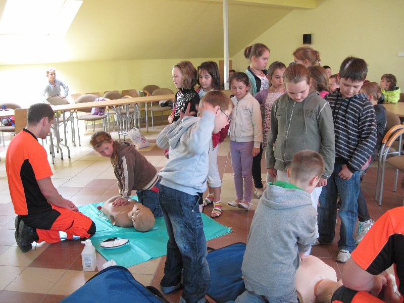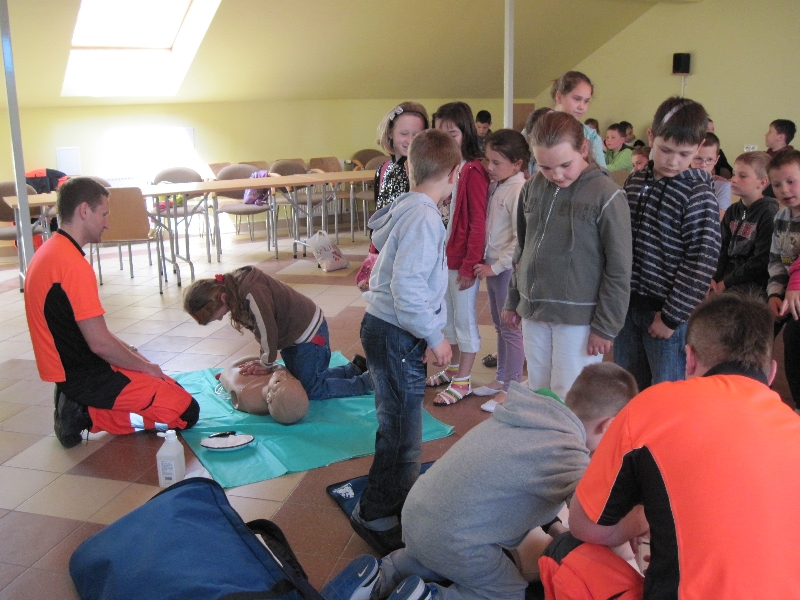 Dnia 31.05.2012 odbyło się kolejne z cyklu szkoleń mających na celu edukację uczniów szkół podstawowych z zakresu udzielania pomocy osobom znajdującym się w stanie zagrożenia zdrowia i życia. Tym razem w zajęciach prowadzonych przez ratowników medycznych Pogotowia Ratunkowego uczestniczyli uczniowie ze Szkoły Podstawowej w Niebieszczanach.