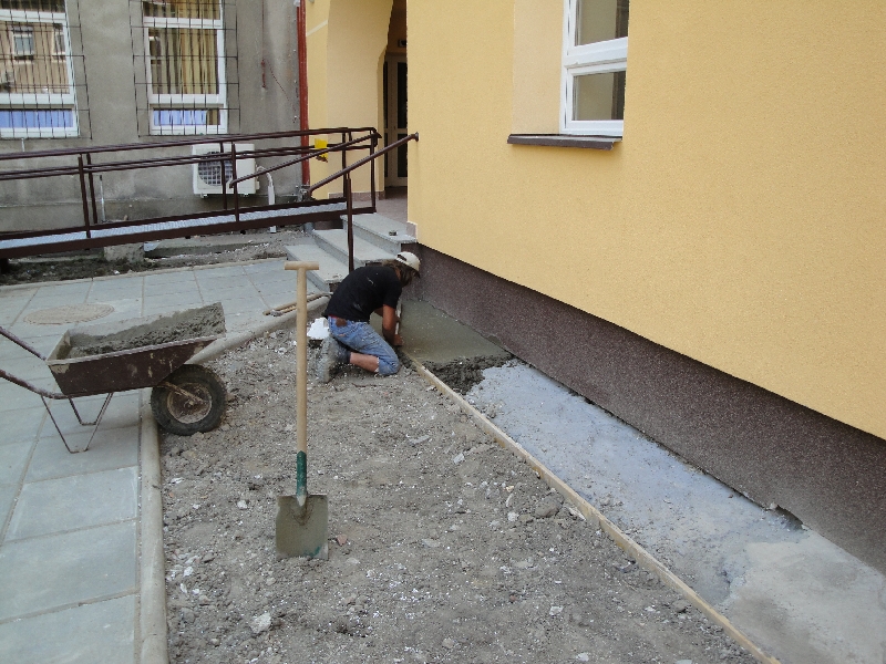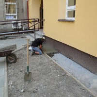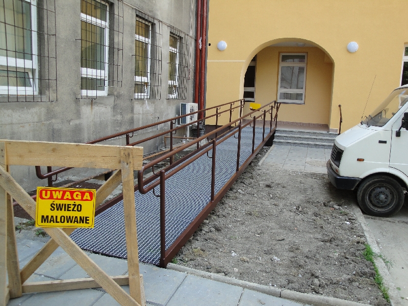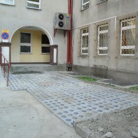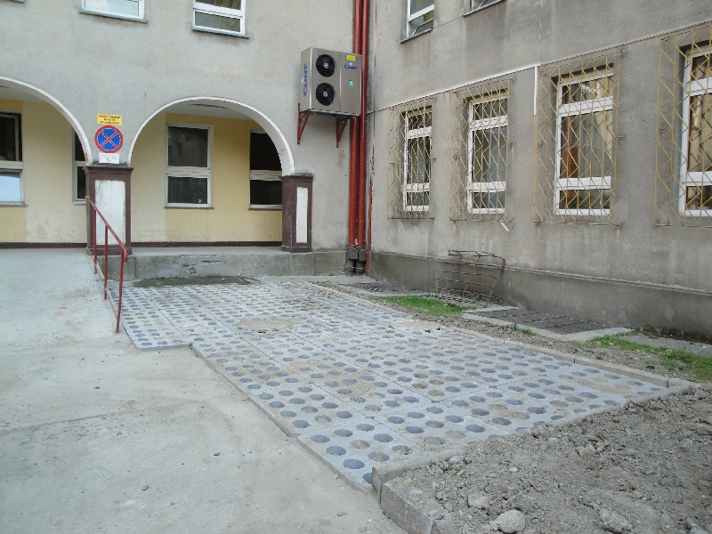 – Wykonano nowe schody wejściowe (2x), podjazd dla osób niepełnosprawnych (1x) oraz stanowisko do rozładunku samochodów dostawczych przy aptece szpitalnej (1x),