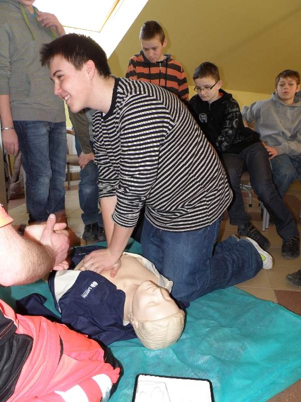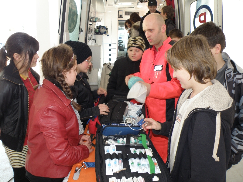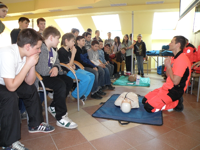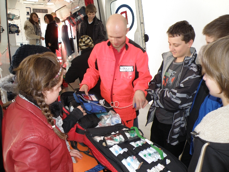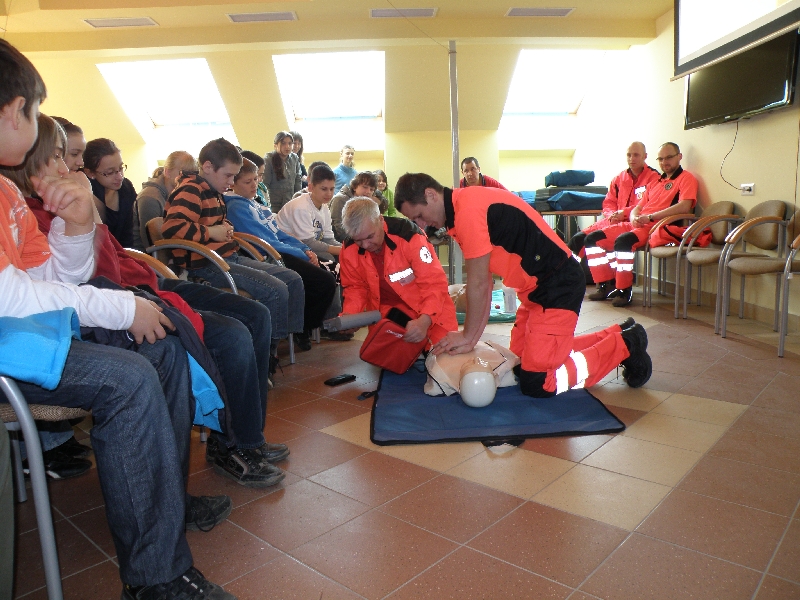 Dnia 16.03.2012 r. sanoccy ratownicy medyczni przeprowadzili szkolenie dla grupy dzieci ze Szkoły Podstawowej Nr 2 w Sanoku z zakresu zasad udzielania pierwszej pomocy. Były to trzecie zajęcia dla uczniów sanockich szkół podstawowych. Obecnie uczestnikami szkolenia byli szóstoklasiści. Młodzież z zaciekawieniem wysłuchała wykładu o pierwszej pomocy, a następnie bardzo aktywnie uczestniczyła w zajęciach praktycznych z wykorzystaniem fantomów (manekinów). Była również okazja do zwiedzenia Stacji Pogotowia Ratunkowego, poznania sekretów karetek i bezpośrednich rozmów z ratownikami medycznymi.