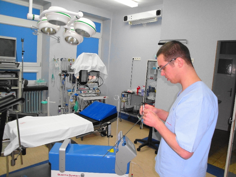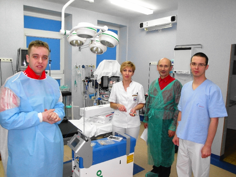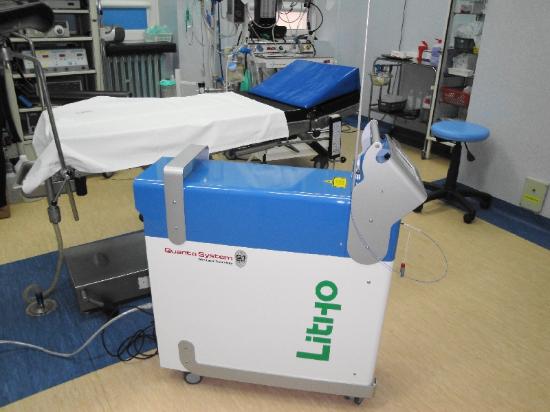 Dnia 02.03.2012 r. sanoccy urolodzy otrzymali nowoczesne urządzenie medyczne do leczenia kamicy nerkowej – litotryptor laserowy „Litho 30W” z osprzętem zabiegowym firmy „Storz”. Aparat pozwala na usuwanie kamieni z układu moczowego drogą endoskopową. Podczas zabiegu przez cewkę moczową wprowadza się cienki, światłowodowy wziernik – endoskop (ureterorenoskop), którym dociera się do kamieni (najczęściej w moczowodzie). Następnie przy pomocy lasera kruszy się kamienie, a ich resztki odsysa poprzez sondę. W urządzeniu wykorzystuje się laser holmowy. Pracuje on w widmie podczerwieni, a jego promieniowanie o długości fali 2100 nm jest w całości absorbowane przez wodę. Działanie aparatu oparte jest na efekcie fototermicznym. Energia lasera – wyzwalana pulsacyjnie – penetruje otaczające tkanki na głębokość do 0.5 mm, co zapewnia bezpieczeństwo pracy i zmniejsza niebezpieczeństwo uszkodzenia dróg moczowych.