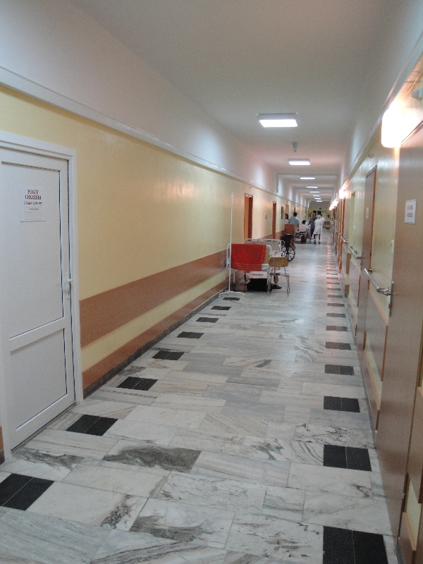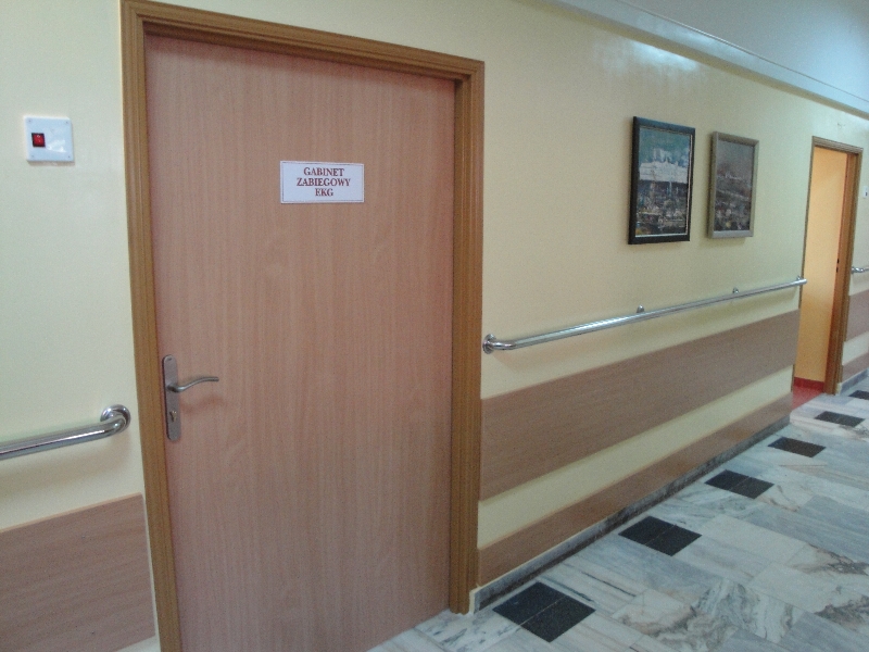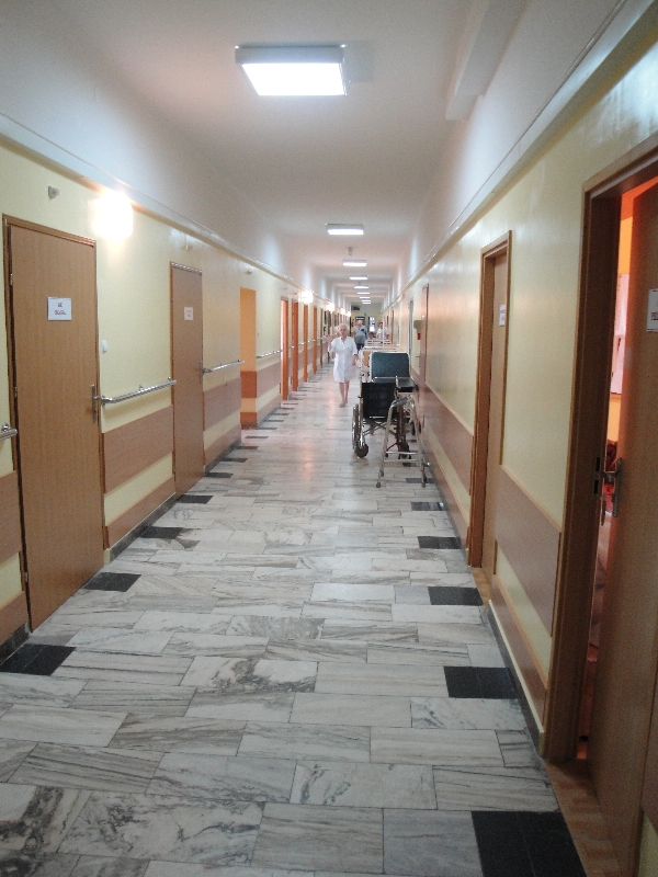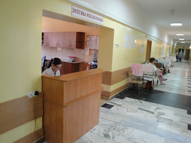 – Odnowienie dwunastu sal chorych, korytarza, sali zabiegowej, gabinetu ordynatora oddziału i pokoju pielęgniarki oddziałowej (wymiana wykładzin podłogowych i fartuchów płytkowych, szpachlowanie i malowanie ścian oraz sufitu, montaż nowego oświetlenia, umywalek, rolet okiennych),
