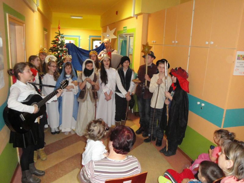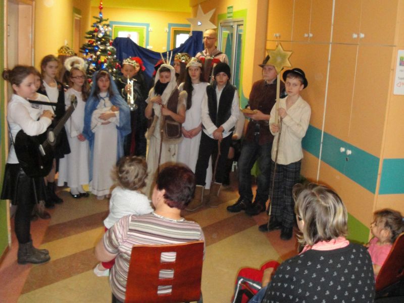Młodzi aktorzy przedstawili misterium narodzin Jezusa Chrystusa dla najmłodszych pacjentów Oddziału Dziecięcego, ich rodziców i opiekunów oraz personelu medycznego. Kolorowe stroje małych aktorów, bożonarodzeniowe recytacje, bogata muzyka i kolędy zabrzmiały radośnie w oddziale. Dla chorych dzieci było to nie lada przeżycie.