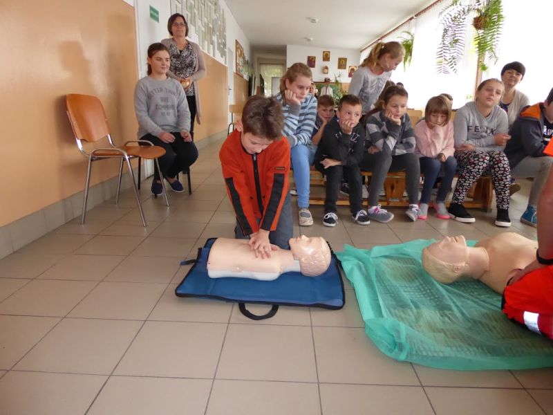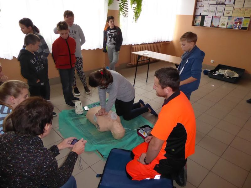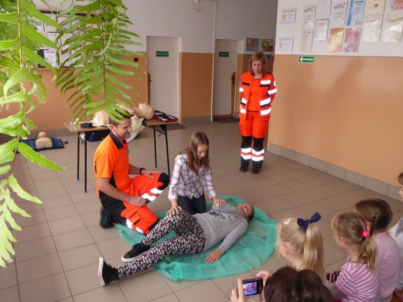 W ramach akcji ,,Ratownicy Dzieciom” w dniu 17.10.2016 r w Szkole Podstawowej w miejscowości Mokre ratownicy medyczni ze Stacji Pogotowia Ratunkowego SP ZOZ zorganizowali pokaz i ćwiczenia z zakresu udzielania pierwszej pomocy w sytuacjach nagłych.