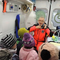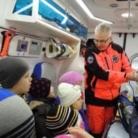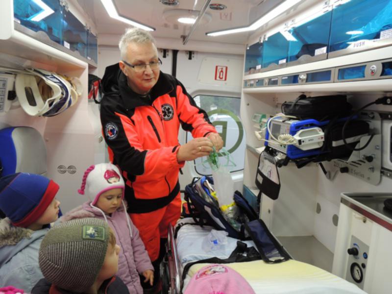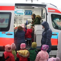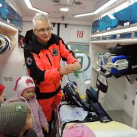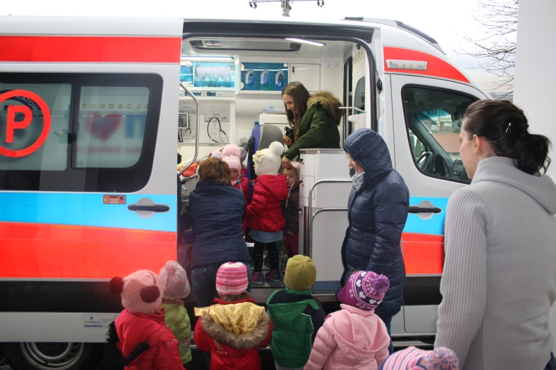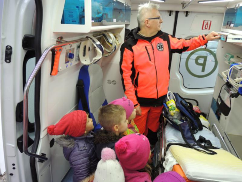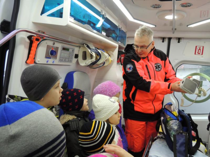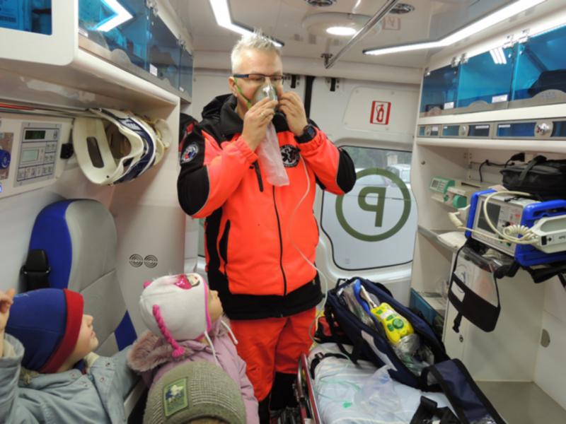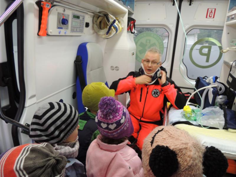 Celem spotkania było przekazanie podstawowej wiedzy o sytuacjach zagrożenia zdrowia i życia. Dzieci uczyły się jak wzywać karetkę, pod jaki numer dzwonić i co zrobić w sytuacji, kiedy trzeba komuś pilnie pomóc. Starszaki wykazały się dużym zaangażowaniem, zadawały dociekliwe pytania i oglądały z zaciekawieniem sprzęt medyczny.